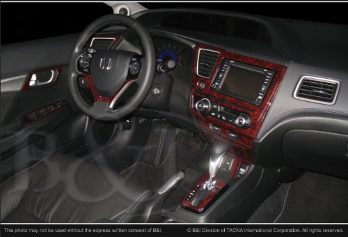 FeaturesInterior dash trim kit for the 2013 Honda Civic Sedan WITHOUT NavigationKit will come with all 56 pieces as shown in SCHEMATIC and a few pieces may not be used. Kit #1091A-SDBKit will come in SDB-Dark Burlwood as shown in installed picture - Please note: Installed kit is for demonstration purposes only. Please refer to schematic for the pieces that come with this kitOur premium urethane clear coat features a thin profile, incredible flexibility & ultimate UV protection that continues to prove its durability, year after year after year. Factory TruLOOK Designs. Our designs are carefully thought out to insure our Wood Dash Kits actually enhance the factory interior, not destroy it with a clutter of poorly designed pieces. 'More' is not always better!!PREMIUM FEATURES: Our flagship product line is packed with powerful features that help make B&I Dash Kits The Premium Choice! Factory TruFIT Engineering. Our Dash Trim Kits are engineered for a true factory look, without sloppy edges, mis-aligned hole cut-outs or parts that peel off because they were not engineered correctly. 3M Primer-Less Adhesive. Our premium 3M 5849 acrylic foam adhesive features built-in promoter for fast and easy installation. Plus, parts are even re-positionable for perfect fitting. Other adhesives require you to apply potentially part-damaging promoter, with a pad or pen, prior to installation. GemFLEX Clear Coat.If you are looking for the best reviews Interior Wood Dash Trim Kit for 2013 HONDA CIVIC 4door SEDAN Without Navigation 56pc Dark Burlwood? Congratulations! Check Interior Wood Dash Trim Kit for 2013 HONDA CIVIC 4door SEDAN Without Navigation 56pc Dark Burlwood more satisfying to update product evaluation and feedback from customers, including specifications, features, and see reviews!