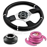 NRG-SRK-105H+008R+650PK, NRG Innovations 13.78" 350mm Black Leather Racing Steering Wheel Combo with 6 Hole Short Hub Adapter with Gen 3.0 with Handle Pink Quick Release Kit SRK-105HNRG Quick Release features many options that conventional ball-locking quick release system do not. It is specially engineered with raised sections to prevent the scratching and stretching of the hub while a self locking feature adds increased safety and functionality. Features racing styled for added style and look. Each unit is made from the highest quality aircraft grade aluminum and is anodized for maximum durability and finish.