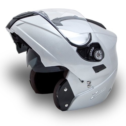 FeaturesModularDOTMotorcycle HelmetPlush Fitting InteriorRetractable Inner Smoke Shield Large FL-24 Flip Up DOT ECE Motorcycle Silver Helmet by Zamp?